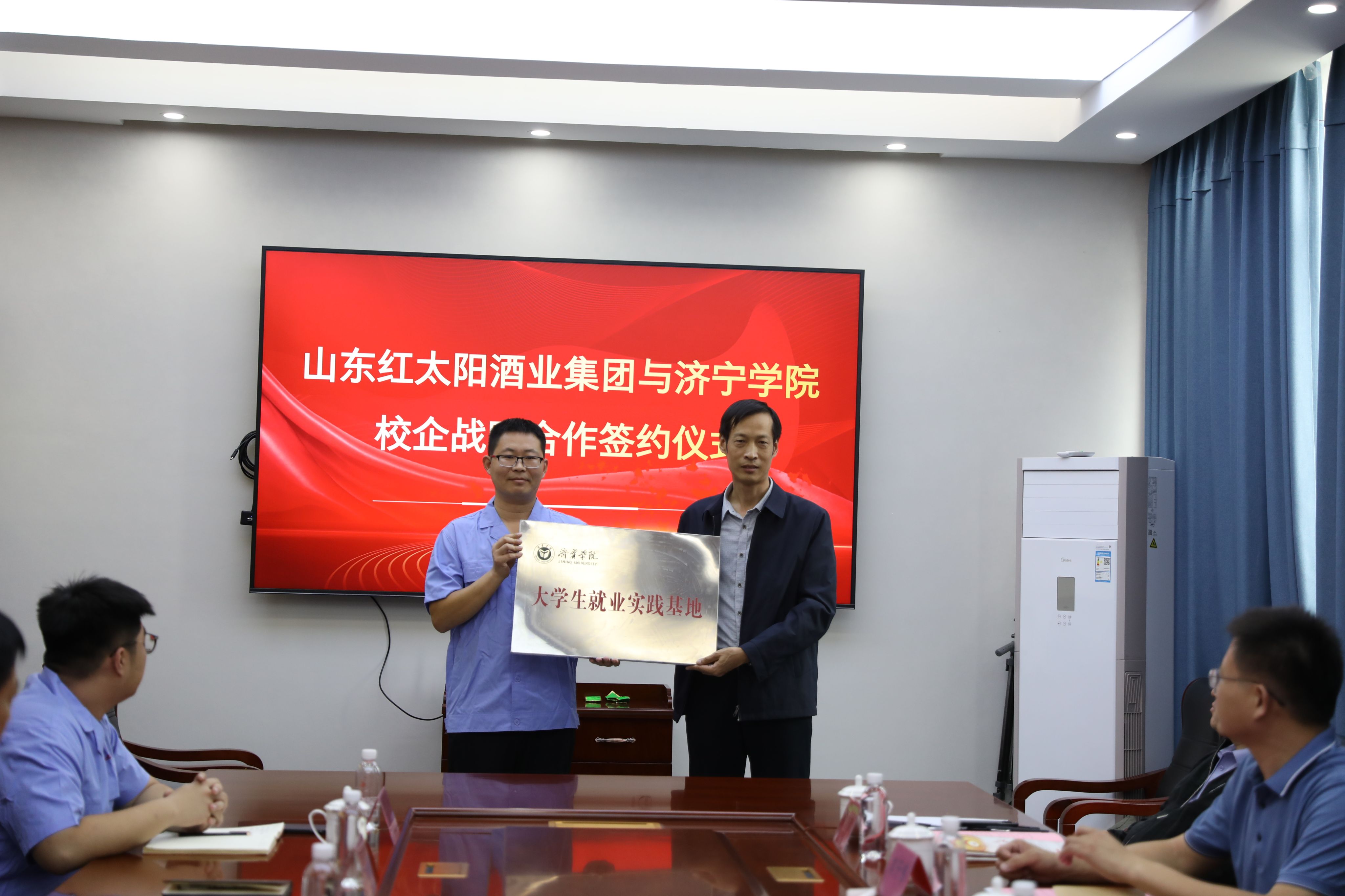 9月26日上午,我校与山东红太阳酒业集团有限公司校企战略合作签约暨“济宁学院实践教学基地”“济宁学院大学生就业实践基地”授牌仪式在山东红太阳酒业集团会议室顺利举行。学校党委委员、副校长尹春光,生命科学与工程学院党委书记刘忠建等一行六人出席仪式。山东红太阳酒业集团总经理任志刚、总工孙守营等企业领导共同参加活动。仪式由集团常务副总经理任宪礼主持。