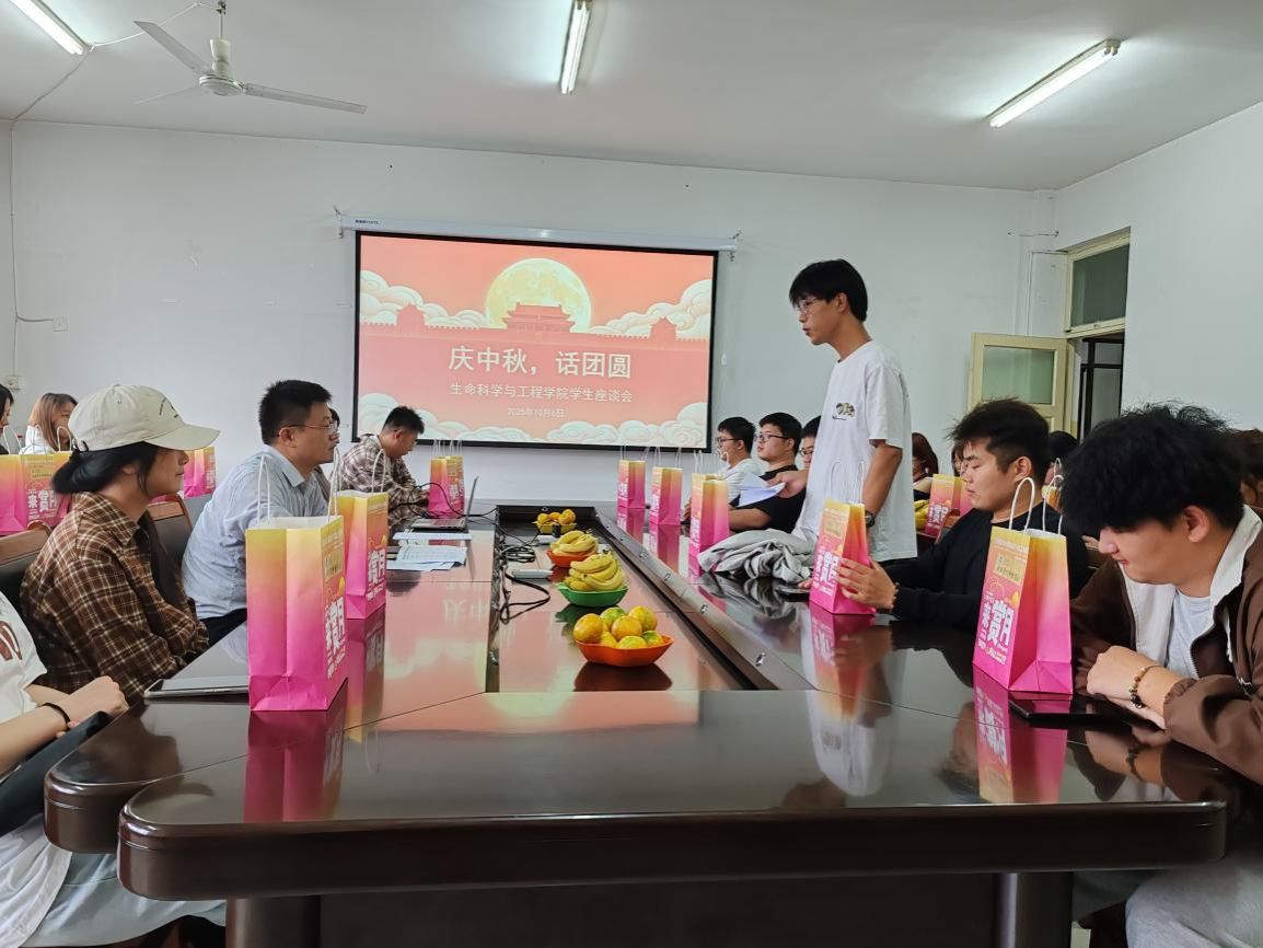 为弘扬中华民族传统文化,让远离家乡的学子感受到家的温暖,10月6日上午,生命科学与工程学院在9号教学楼A408室举办中秋座谈会。学院党委副书记刘开伟出席活动并与同学们亲切交流,辅导员马泽瀛与省外、少数民族及其他留校学生代表欢聚一堂,共话团圆。座谈会由马泽瀛主持。
