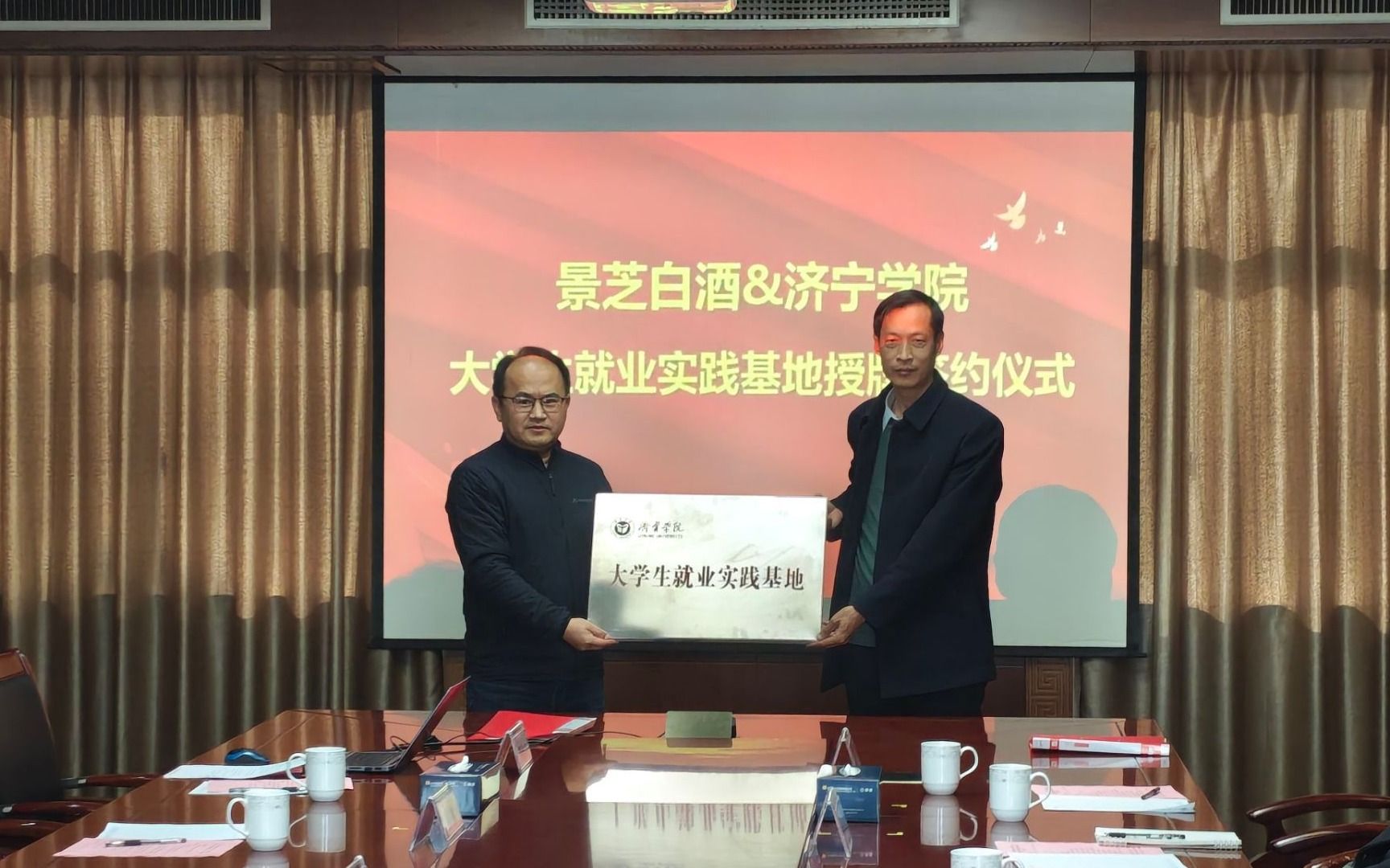 在与会人员的共同见证下,刘忠建与冯涛分别代表校企双方签署了《毕业生就业实践基地建设合作协议》,并举行了“济宁学院大学生就业实践基地”授牌仪式。活动中,已在景芝白酒就业的毕业生代表分享了个人成长体会,其工作表现得到了企业好评。双方还围绕人才培养模式、课程体系建设、学生实习就业等方面展开深入交流。随后,进入企业面试复试环节的十名2026届毕业生参加了生产储备生面试复试。