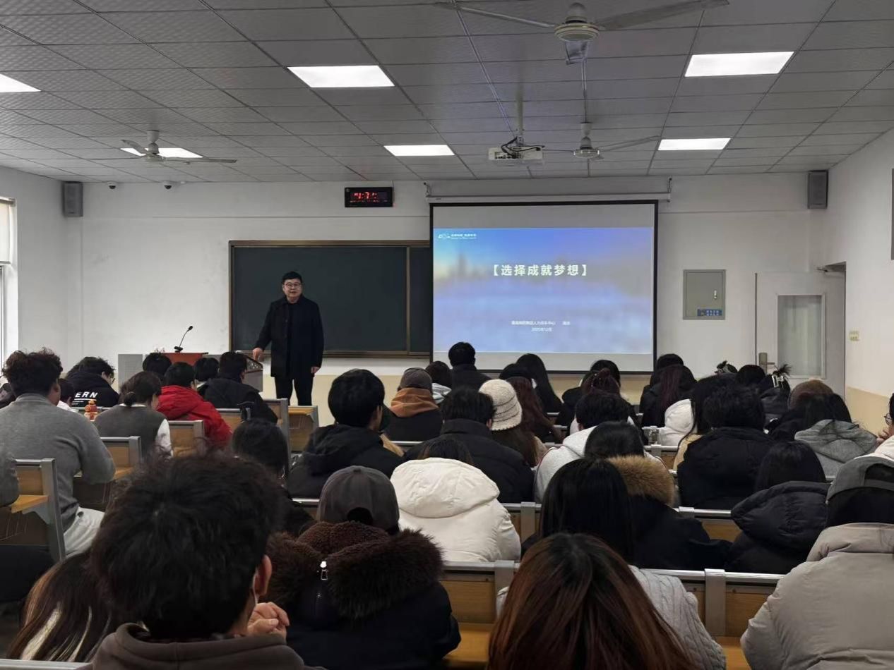 为引导学生树立科学的职业发展观念,明确个人成长路径,12月10日下午,我院在9号楼C205教室成功举办以“如何成就梦想”为主题的职业生涯规划专题讲座。本次讲座特邀鲁南制药集团股份有限公司人力资本中心主任周冰担任主讲,吸引近百名学生踊跃参与。