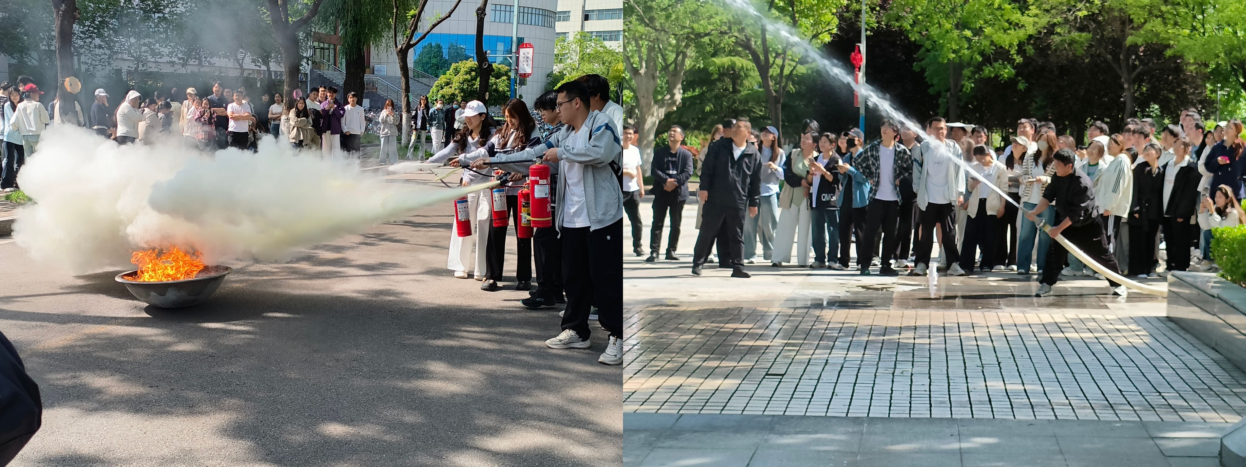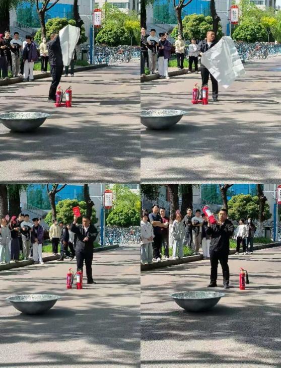 在初期火灾扑救实战演练环节,师生代表依次上场实操,严格按照“提、拔、握、压”标准步骤模拟灭火。通过亲身实践,大家切实补齐了消防实操短板,真正做到懂器材、会操作、能处置。