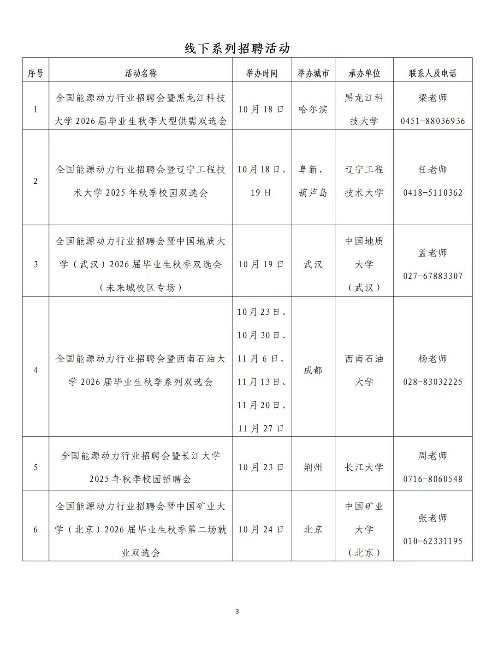 本次招聘聚焦能源动力领域人才需求,线上专场将于10月20日至12月30日在国家大学生就业服务平台(https://www.ncss.cn)举办“全国能源动力行业2026届秋季网络招聘会”,毕业生可登录平台专区或扫码获取岗位信息,覆盖电力、新能源、热能工程等多领域岗位。
