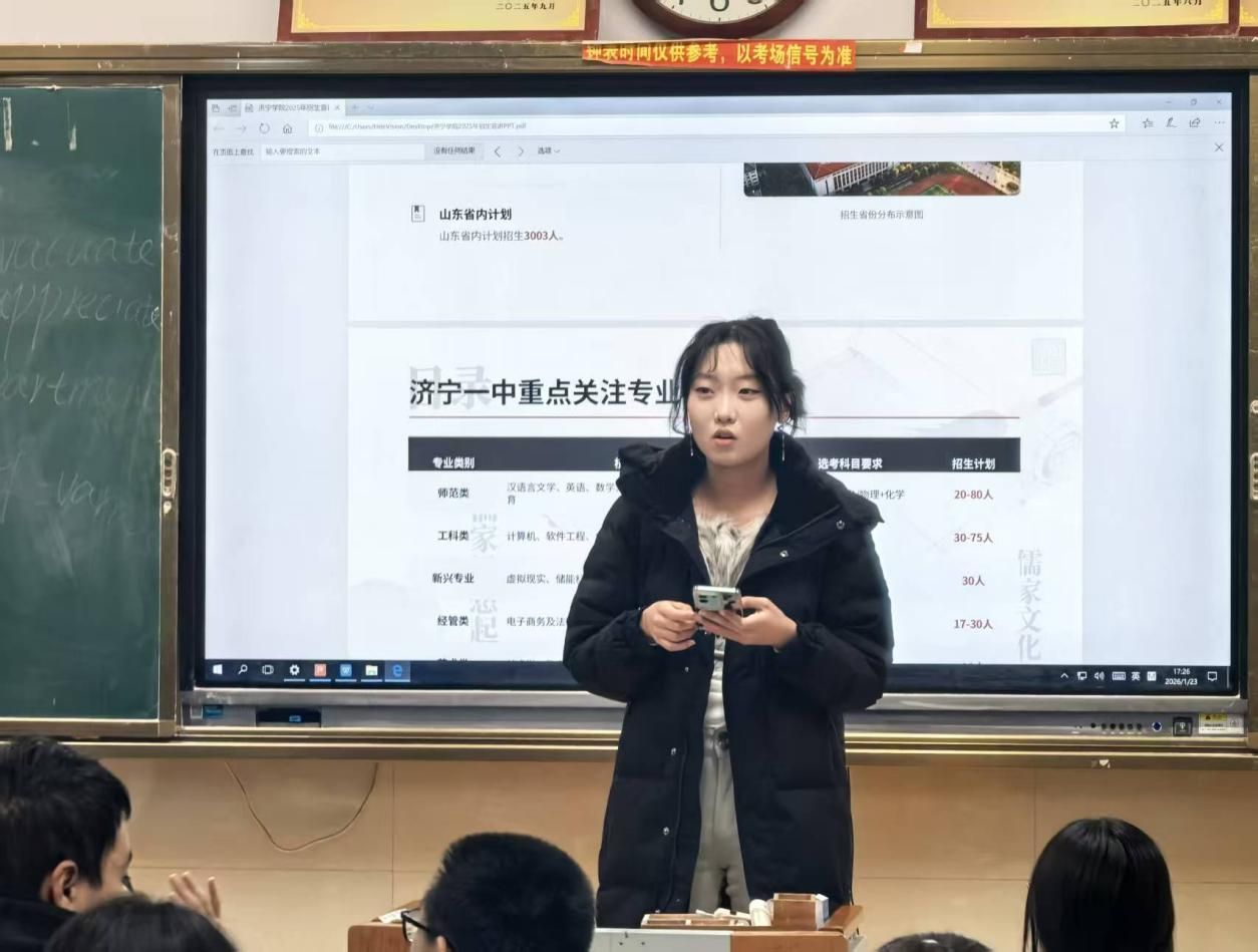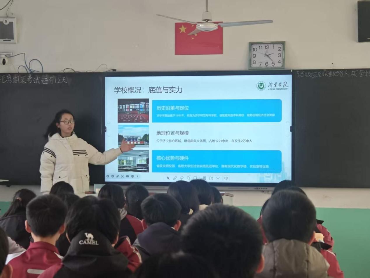 为积极响应校团委、教务处关于开展第八届“济园学子高中母校行”招生宣传主题实践活动的号召,寒假伊始,我院多名学子返回高中母校,化身“济园代言人”,通过宣讲分享、互动交流等形式,向学弟学妹全面展示济宁学院的办学特色、专业优势与校园文化。他们在实践中锻炼表达、在分享中传递真情,以实际行动搭建起高中与大学之间的桥梁。
